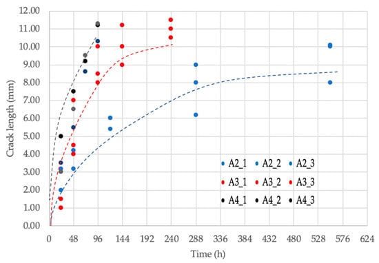 - Cracks growing individually or with interconnection only at the moment of inspection.