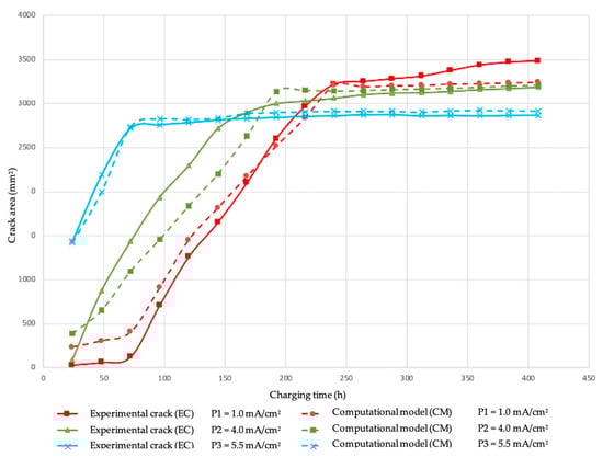 - The model proposed in this study successfully simulated the kinetics and morphology of hydrogen-induced cracking (HIC) nucleation and growth in a low-carbon steel plate under static loading conditions. It does not currently account for cyclic stresses or temperature fluctuations. The model incorporates key factors, such as the spatial distribution of HIC nucleation sites, the hydrogen influx represented by the applied current density, and experimentally observed features, like the delayed onset of HIC. This framework offers a valuable tool for understanding HIC evolution by varying input parameters and analyzing the resulting total cracked area and the final morphology of HIC-damaged regions in low-carbon steel plates. It is considered an important first step toward developing a predictive algorithm for estimating the remaining service life of process piping and equipment made of low-carbon steel exposed to hydrogen-charging environments. Future improvements to the model will aim to incorporate microstructural parameters, such as grain size and phase distributions, local stress fields, cyclic loading conditions, and steel samples with different fracture toughness levels, in order to evaluate how these variables affect HIC kinetics.