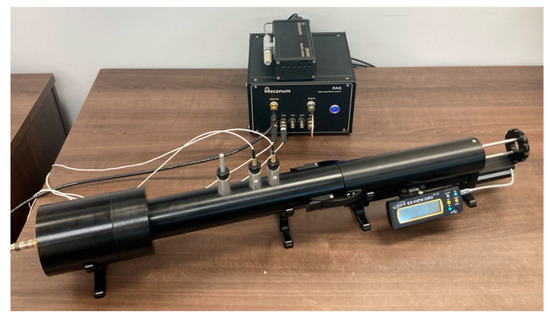 First, the sound absorption coefficient values were measured using an impedance tube (Mecanum Instruments, Sherbrooke, QC, Canada) with an internal diameter of 44 mm according to ASTM E-1050 [41]. For each material, five samples were tested. Figure 5 illustrates the impedance tube used for measuring the sound absorption coefficient.