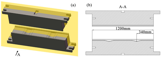 Flattening forging die in Scheme 1: (a) free view and (b) cross-sectional view.