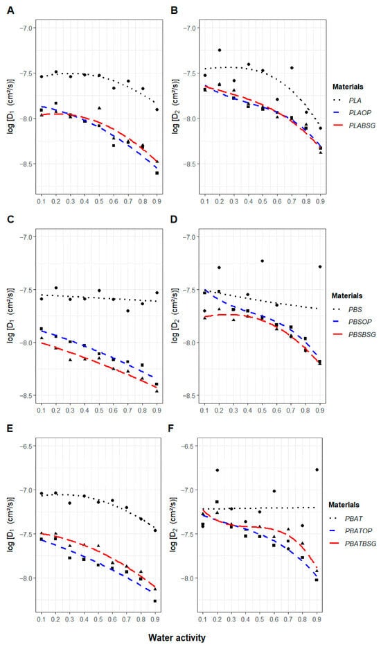 This study aims to compare the effects of OP and BSG fillers in PLA, PBS, and PBAT matrices in terms of intrinsic properties—mechanical, thermal, and water vapor sorption behavior—with a particular focus, using modeling approaches (Park model), on the water vapor sorption kinetics of the materials.