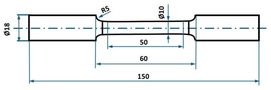 Tensile test bar dimensions according to the ISO 6892-1 standard [31] (dimensions given in mm).