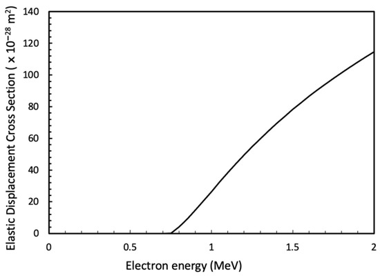 Displacement cross section for Sn metal as a function of electron energy with a displacement energy of 24 eV [30] using a SMOT/POLY code [28,29].