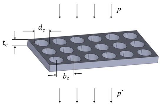 Based on the idea of the acoustical–electrical analogy method for series and parallel connections [29], the perforated plate is equivalent to a parallel combination of multiple single holes. Thus, the acoustic characteristic impedance of the perforated plate structure can be obtained by solving the following equations, (5) to (7), simultaneously: