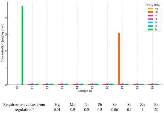 The research procedure was carried out following the Regulation of the Minister of Economy of 16 July 2015, Annex 2 [24], concerning the conditions for accepting waste at landfills. The European standard PN-EN 12457-4:2006 [25] was used as the test methodology, which describes the procedure for the leachability test in a solid–liquid system at the ratio of L/S = 10 dm3/kg (liters of extraction liquid per kilogram of dry material).