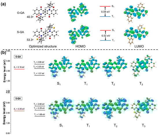 - Nathiya, S.; Panneerselvam, M.; Costa, L.T. A theoretical investigation of heavy atom and oxidation effects in MR-TADF emitters for OLEDs: A combined DFT, double hybrid DFT, CCSD, and QM/MM approaches. Chem. Chem. Phys. 2025, 27, 7265–7278. [Google Scholar] [CrossRef]
