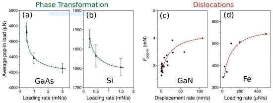 - Chrobak, D.; Kim, K.H.; Kurzydłowski, K.J.; Nowak, R. Nanoindentation experiments with different loading rate distinguish the mechanism of incipient plasticity. Appl. Phys. Lett. 2013, 103, 072101. [Google Scholar] [CrossRef]