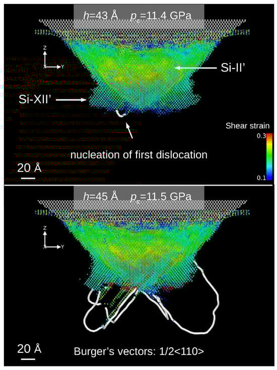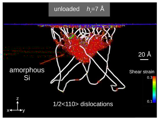 - Zhang, Z.; Stukowski, A.; Urbassek, H.M. Interplay of dislocation-based plasticity and phase transformation during Si nanoindentation. Comput. Mater. Sci. 2016, 119, 82–89. [Google Scholar] [CrossRef]