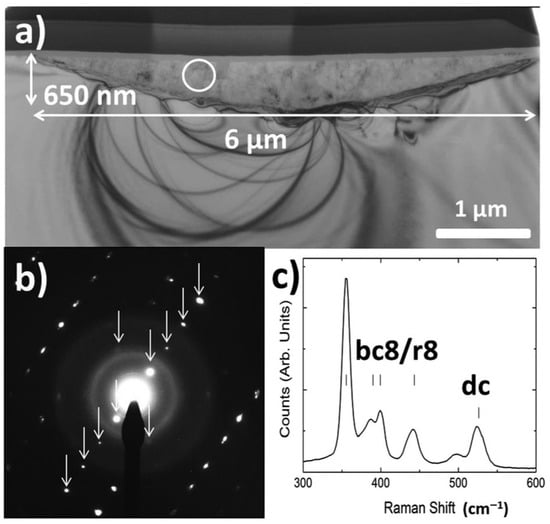 - Kim, D.E.; Oh, S.I. Deformation pathway to high-pressure phases of silicon during nanoindentation. J. Appl. Phys. 2008, 104, 013502. [Google Scholar] [CrossRef]