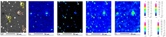| Point | C | O | Al | Si | S | Ce | Zn | Mg | Cu | Mn | Zr |