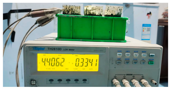The two-electrode method was used to measure the electric resistance of CF-CM specimens (see Figure 1) with a testing frequency of 10 kHz, which was reported to eliminate the interface resistance. For explanation, the unit of “4.4062” in Figure 1 was “Ω”.