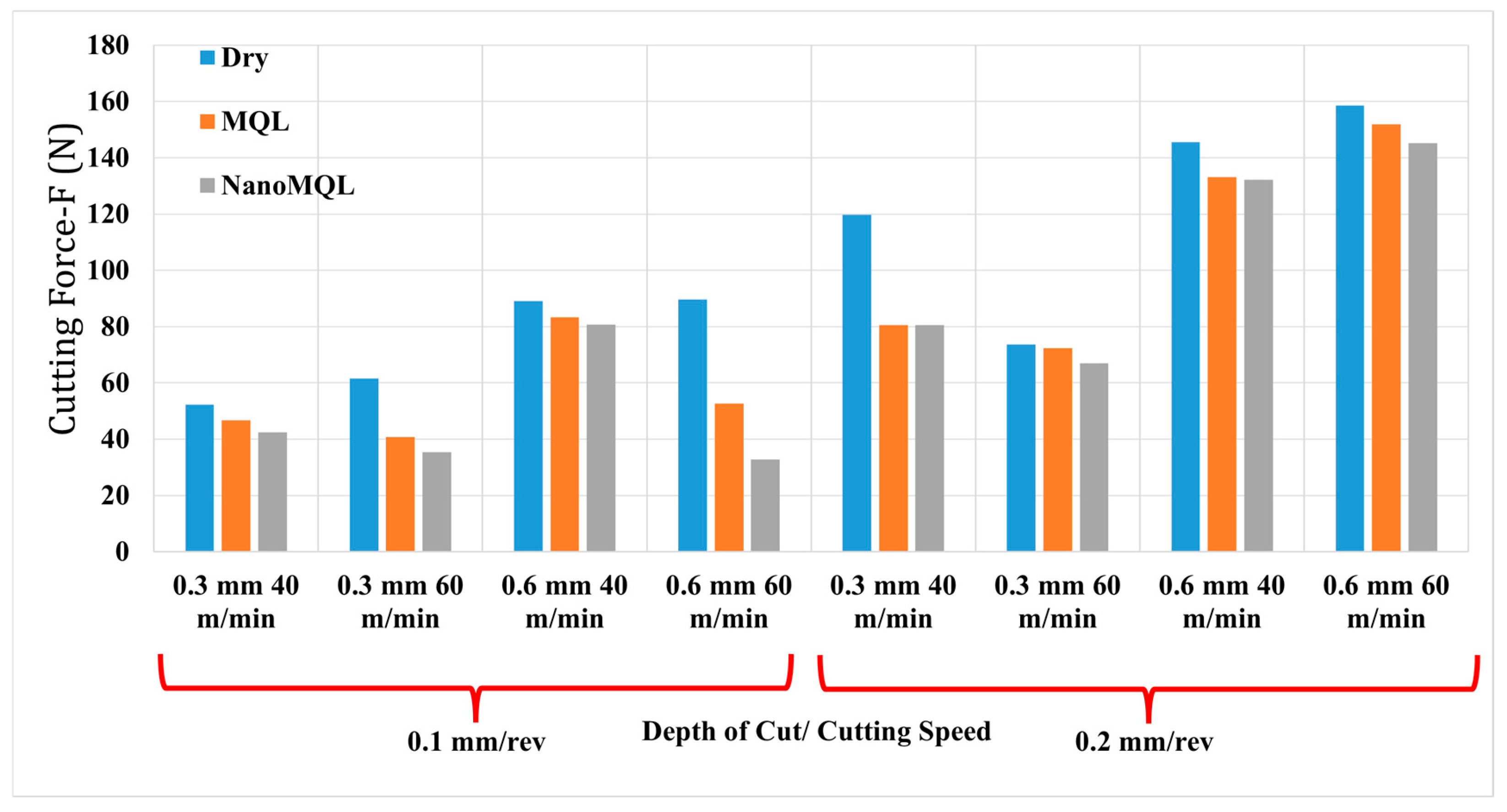 2. Nano-MQL noticeably decreased energy consumption and cutting forces.