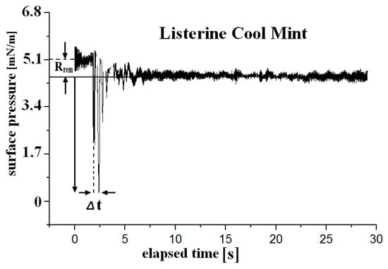 However, the surface rheology kinetics parameters (the complex surface dilatational modulus, for instance [3]) can affect efficiency of interfacial interactions between mouthrinse and a solid surface, which depends on the timescale of the surface deformation in reference to the characteristic relaxation times of processes occurring at the air–liquid interface, further mediating interfacial vertical molecular segregation or architecture of liquid-composing compounds [4,5].