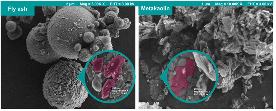 The SEM images of fly ash and metakaolin.