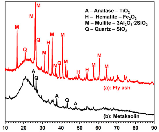 Diagram of the X-ray results for the (a) fly ash and (b) metakaolin powders.