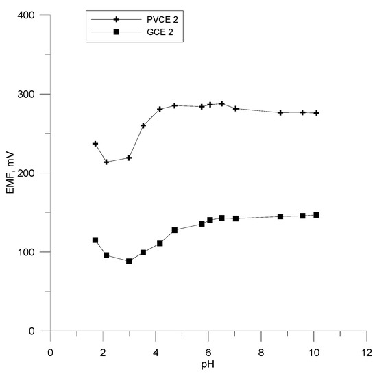 The effect of pH on electrodes PVCE 2 and GCE 2.