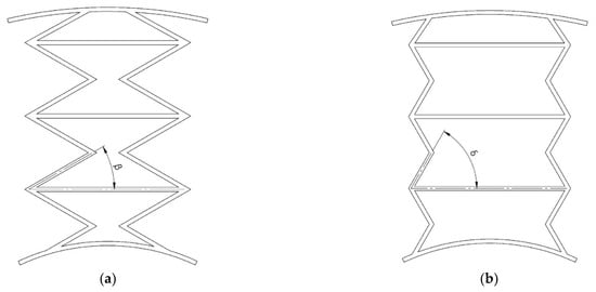 Auxetic cellular NPT structure: (a) with internal angle, (b) with internal angle (figures based on [24]).