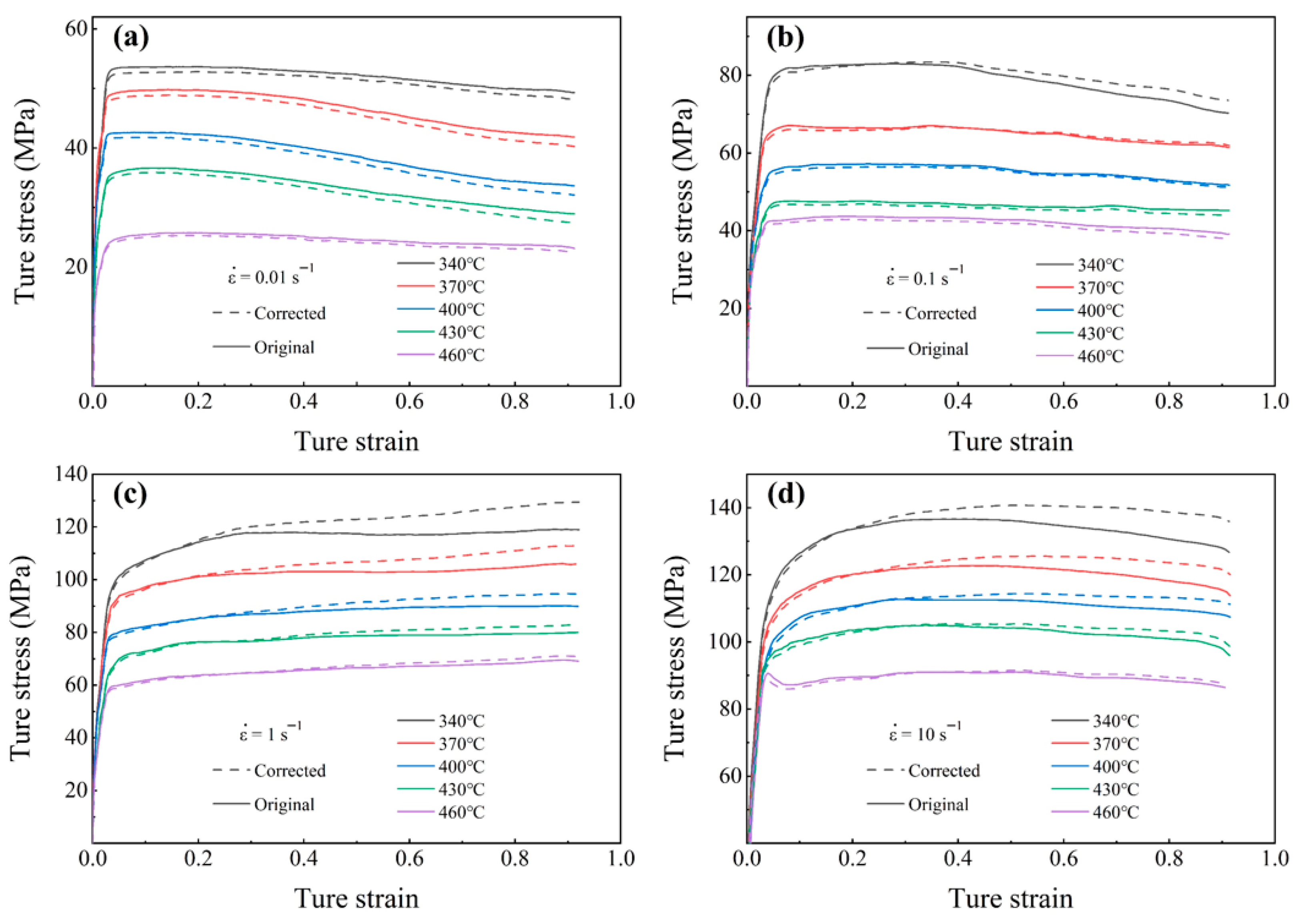 3.1. Analysis of Stress–Strain Curves During Thermal Deformation Processes