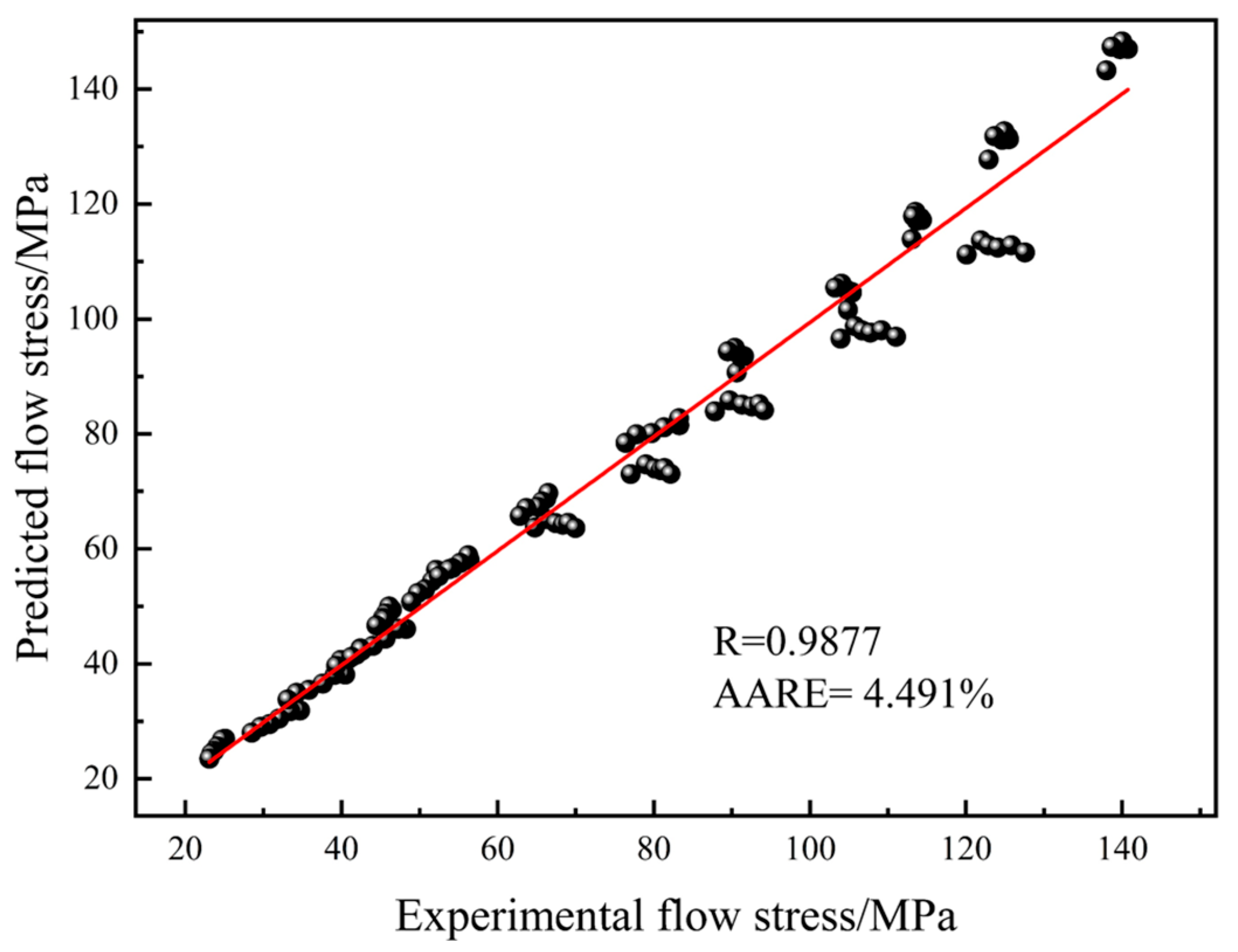 - Lin, X.; Wu, X.; Cao, L.; Bai, M.; Meng, Y. Optimization of flow stress model and 3D-processing map for spray-formed aluminum alloy 7055 based on GA-BP artificial neural network. J. Alloys Compd. 2025, 1021, 179743. [Google Scholar] [CrossRef]