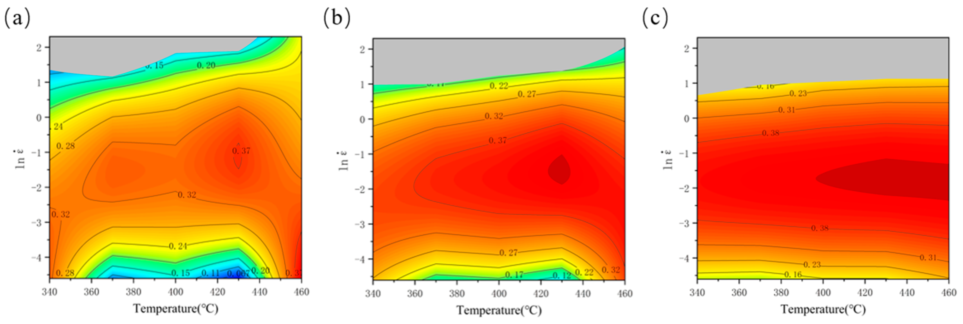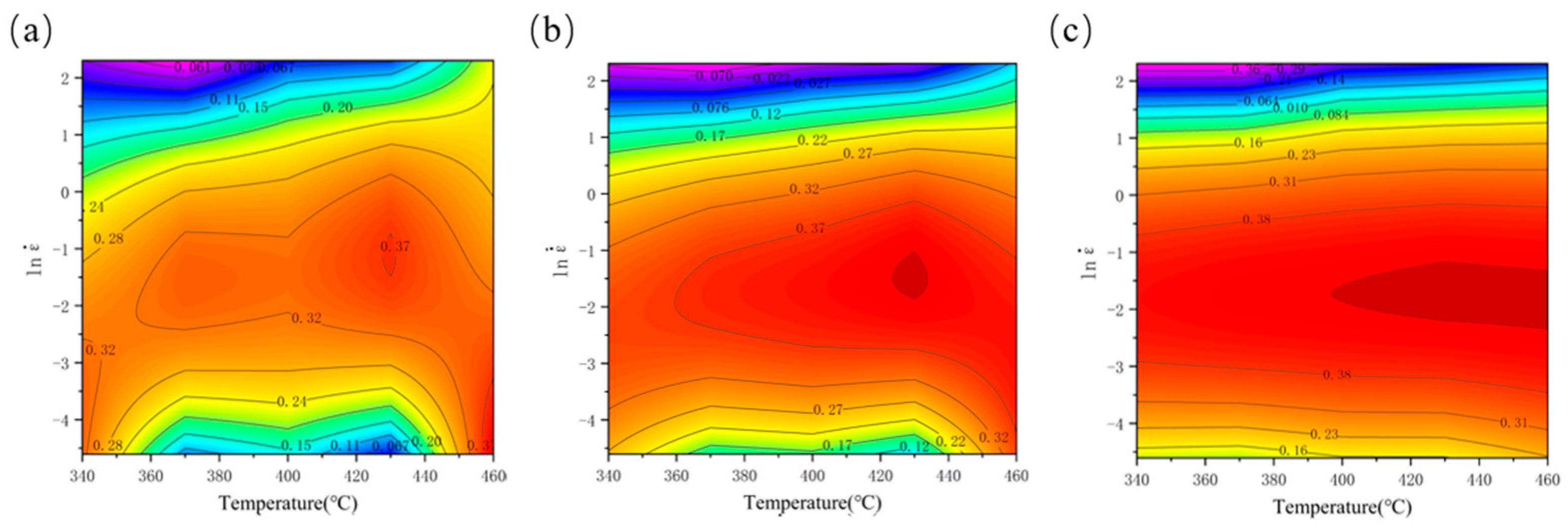 - Raj, R. Development of a processing map for use in warm-forming and hot-forming processes. Metall. Trans. A 1981, 12, 1089–1097. [Google Scholar] [CrossRef]
