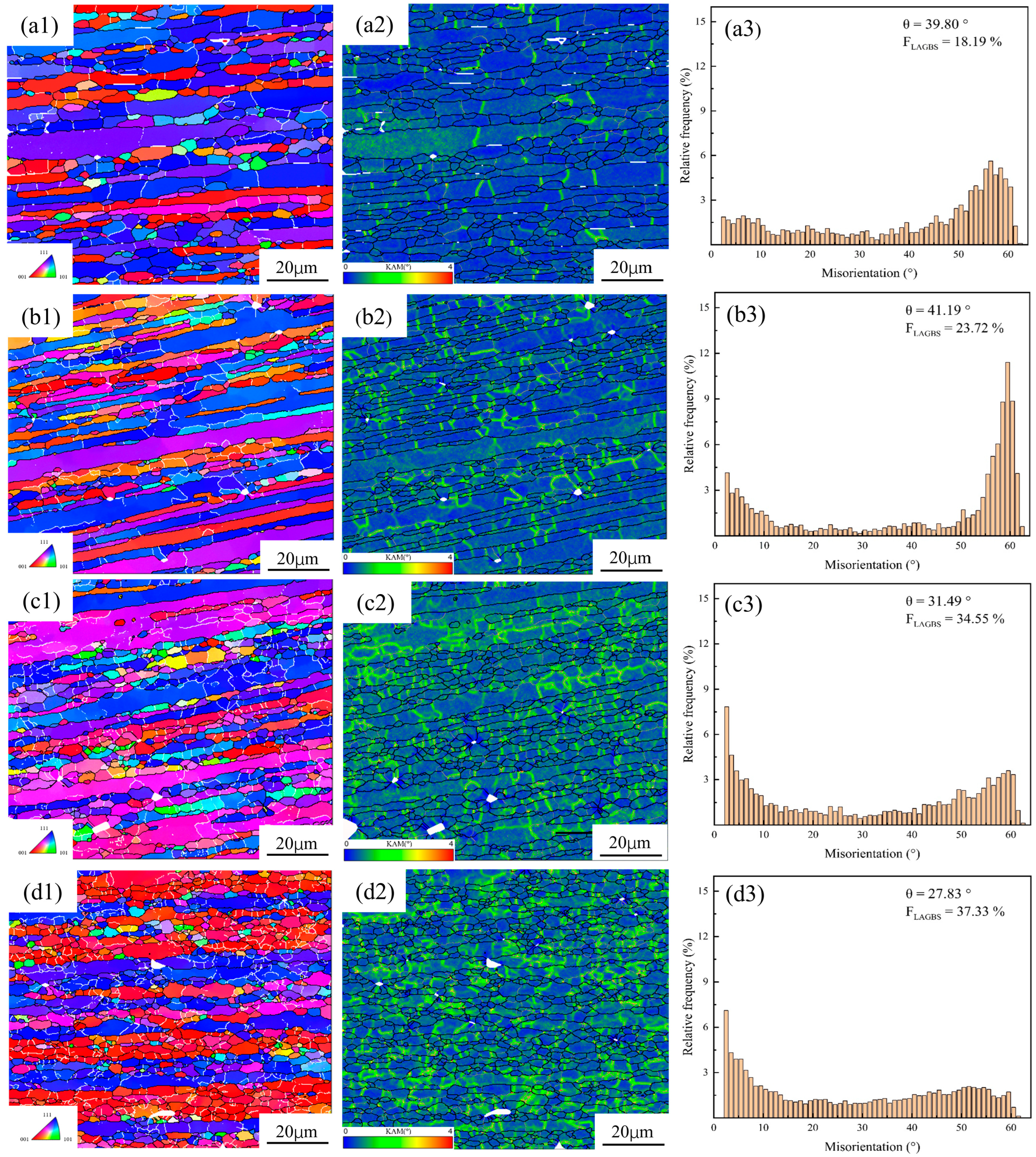 3.4.2. Microstructural Evolution with Deformation Temperature