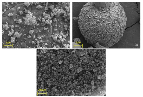 Microstructure of cementitious materials: (a) silica fume; (b) fly ash; (c) NS.
