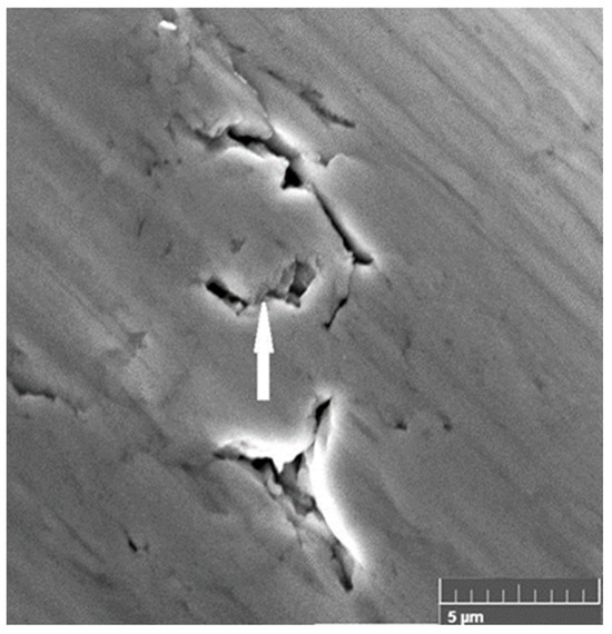 Importantly, the nanocrystalline structure and hardness of the top surface layers were preserved. The phase analysis does not reveal the oxide phases. Meanwhile, the surface is relatively smooth without deep grooves, characterizing scuffing and seizure. Plastic deformation in Ag under unstable friction is limited, owing to the interaction of deformation twins and dislocation slip at high hydrostatic compression and relatively high measured temperatures, leading to easy shearing through the porous surface area and, finally, to ductile fracture (Figure 9). Ductile fracture is supported by the relaxation of shear stress around the voids. Shearing can be facilitated by an excessive number of pores. The formation of voids in the interface significantly reduces the real contact area and thus increases the contact pressure.