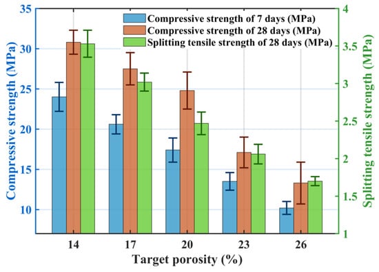 Effect of target porosity on mechanical properties (7 d CS, 28 d CS, STS).
