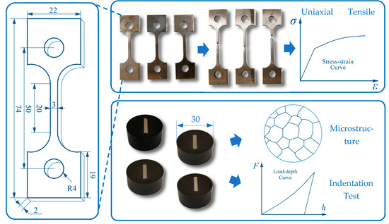 The experimental procedure is illustrated in Figure 3. The chemical compositions of tested specimens are listed in Table 2. All materials were provided and machined into specimens for testing and prepared for microscopy observation.