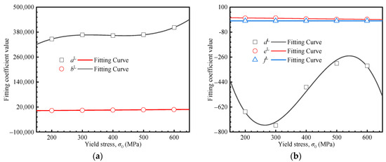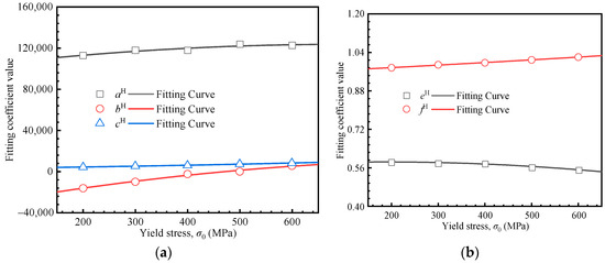 where aH, bH, dH, eH, and fH represent the fitting coefficients. As shown in Figure 8, these coefficients exhibit a strong correlation with the yield stress, and their corresponding values are summarized in Table 3.