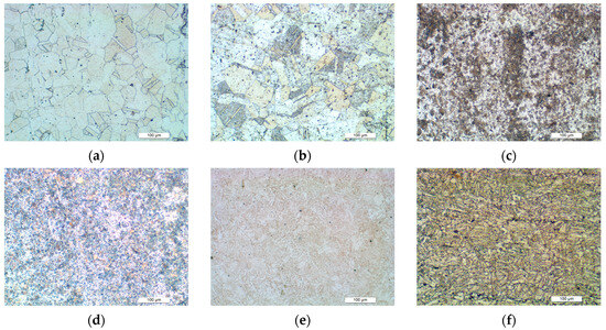 Microstructures of materials. (a) SS316L, (b) SS304, (c) SA508, (d) 42CrMo, (e) Q235, (f) X80.