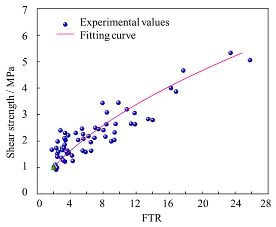 In this work, a total of 61 NC-UHPC specimens were prepared and tested with our device, the roughness (indicated by FTR) and shear strength are listed in Figure 12. The experimental results were fitted with a quadratic polynomial using the least squares method, and the fitting function can be described as