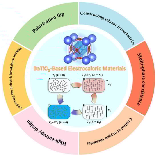 - Zhao, C.; Huang, Y.; Wu, X.; Gao, M.; Lin, T.; Lin, C. Evolution behavior of electrocaloric effect in BaTiO3-based ceramics with different phase structures and phase transitions. J. Am. Ceram. Soc. 2024, 107, 195–204. [Google Scholar] [CrossRef]