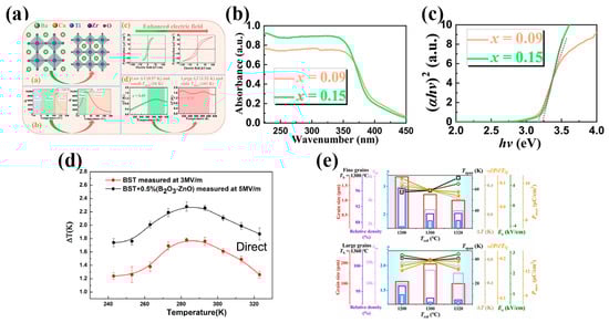 - Tang, S.; Huan, C.; Zhou, X.; Lu, Z.; Meng, Y.; Liu, L.; Ke, Q. Selective forming process for microstructures engineering of BST-based ceramics to achieve promoted electrocaloric performance. Ceram. Int. 2025, 51, 10174–10183. [Google Scholar] [CrossRef]