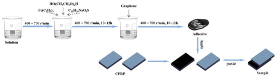 All raw materials were used as received without further purification. Graphene sheets (purity > 90%) and sodium dodecylbenzenesulfonate (analytical reagent, AR) were purchased from Shanghai Aladdin Biochemical Technology Co., Ltd., Shanghai, China. Isopropanol (AR) was supplied by Fuchen (Tianjin) Chemical Reagent Co., Ltd., Tianjin, China. Liquid E51 epoxy resin was obtained from Shanghai Aotun Chemical Technology Co., Ltd., Shanghai, China. Ferrocene (purity 99%) was provided by Shanghai Yien Chemical Technology Co., Ltd., Shanghai, China. Polyethylene glycol (number-average molecular weight, Mn = 2000) was purchased from Shanghai Maclin Biochemical Technology Co., Ltd., Shanghai, China.