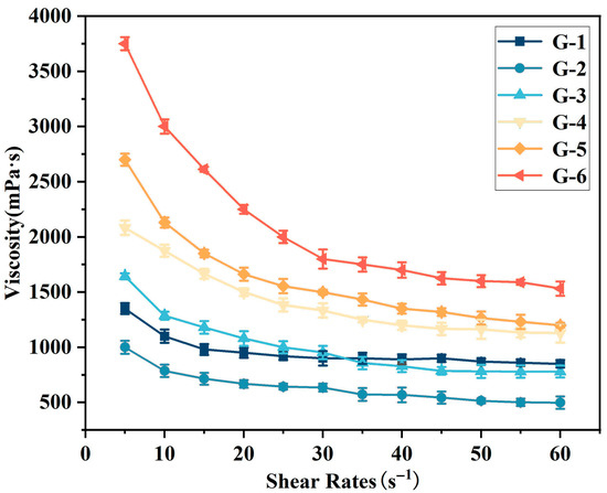Firstly, the dependence of viscosity on shear rate was investigated. As illustrated in