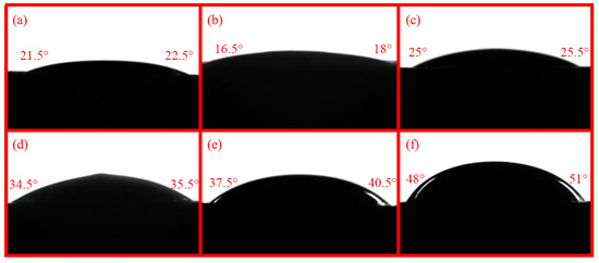 Figure 3. The contact angles of G-X adhesive solutions are presented in
