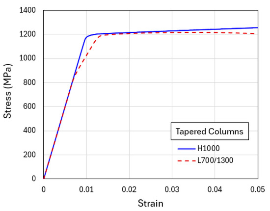 Engineering stress–strain curves obtained from the simulations of flat-indenter compression of tapered columns with material models of H1000 and L700/1300.