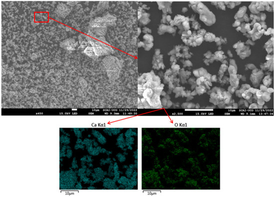 SEM images and EDS mapping of CaO.