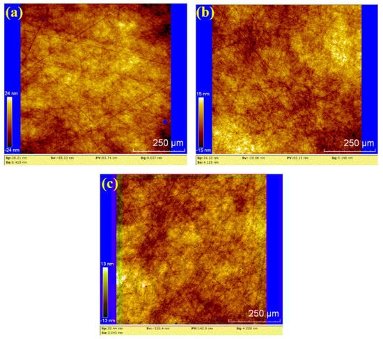 WLI images by dry polishing: (a) sample 1; (b) sample 2; (c) sample 3.