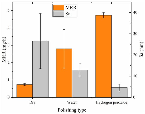 - Water polishing achieved an MRR of 2.800 mg/h (6.057 μm/h) and a surface roughness of Sa 12.955 nm. Hydrogen peroxide polishing achieved an MRR of 4.733 mg/h (10.239 μm/h) and Sa 4.593 nm, which is the highest efficiency and best surface quality. Mechanistic analysis confirmed that catalytic •OH generation reduced mechanical scratch depth while increasing oxidation-driven material removal.