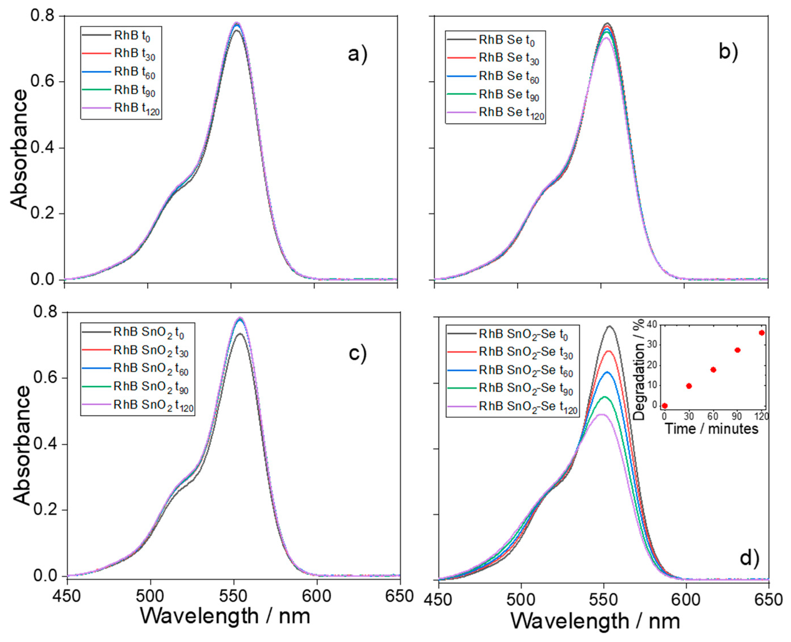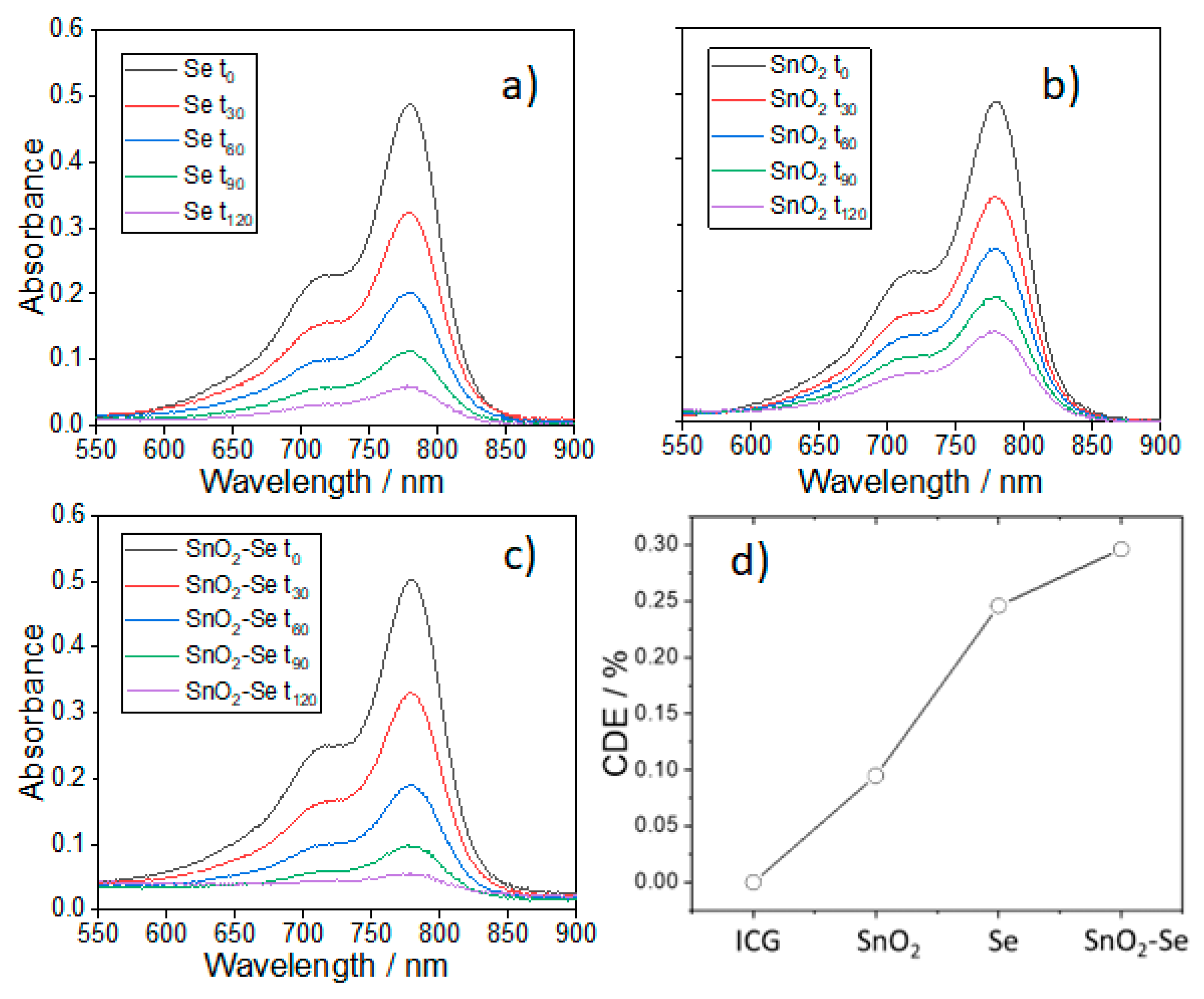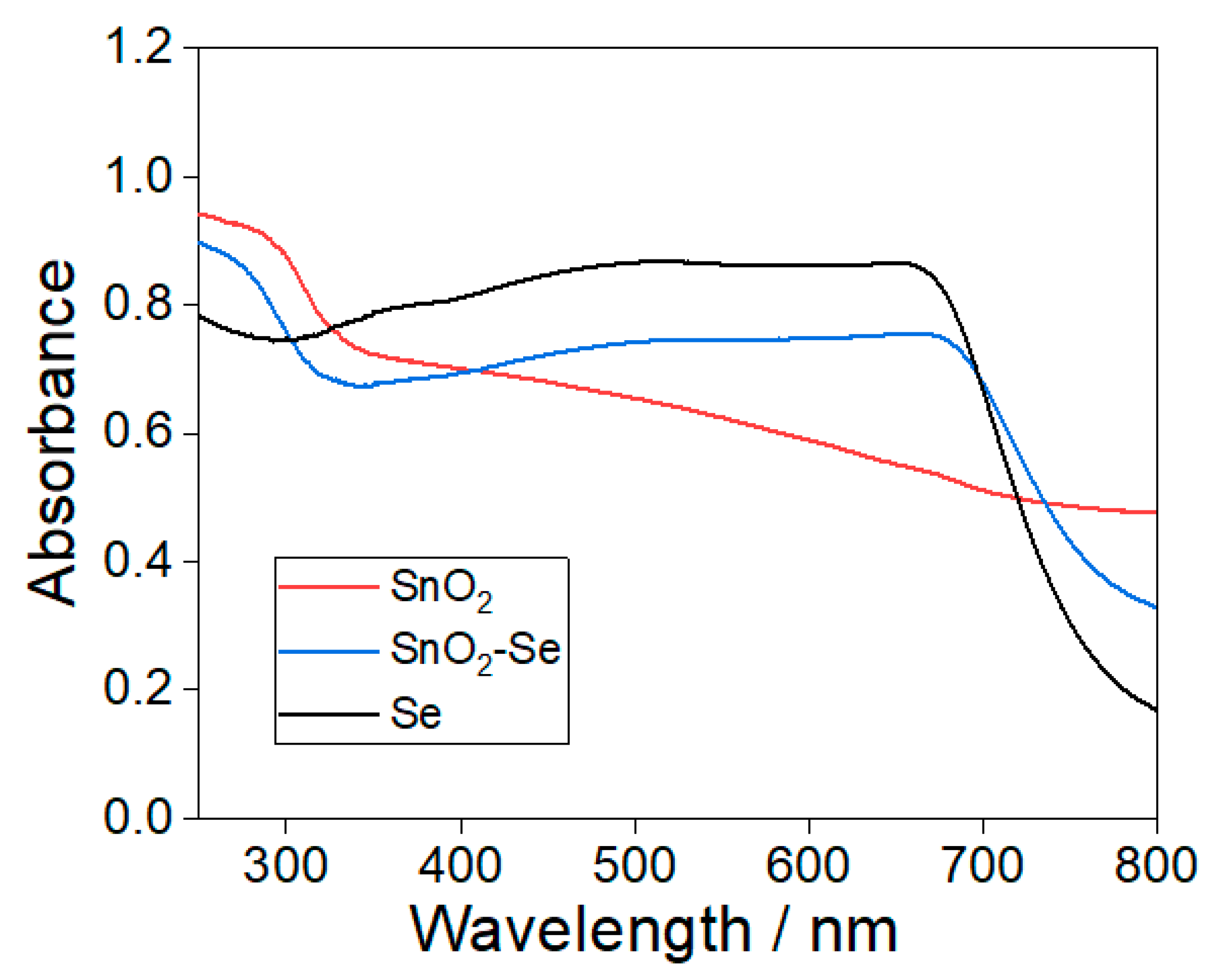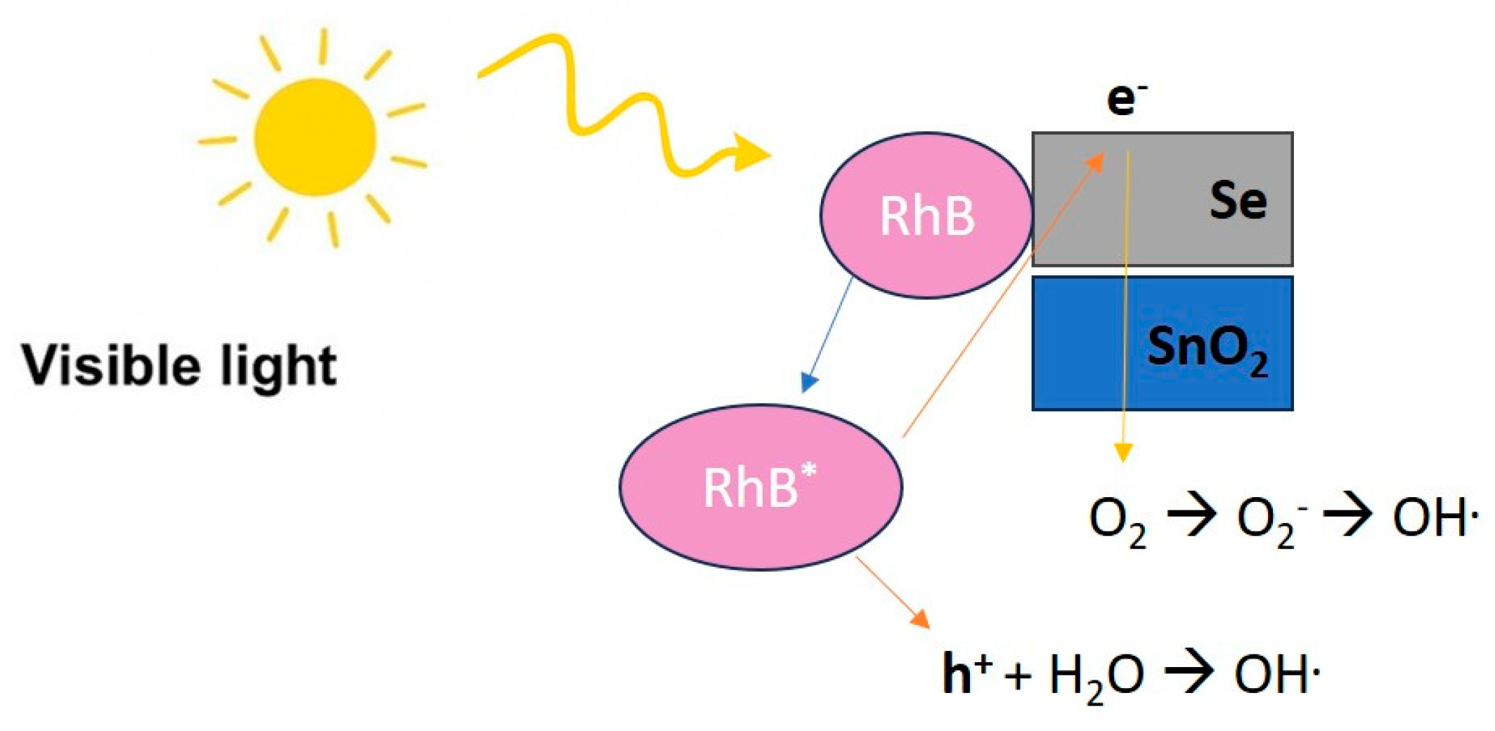 - Zhou, Y.; Zhang, C.; Wang, Y.; Liang, Y. Photocatalytic performance of SnO2/Se heterojunctions for dye degradation under visible light. Appl. Surf. Sci. 2020, 506, 144923. [Google Scholar] [CrossRef]
