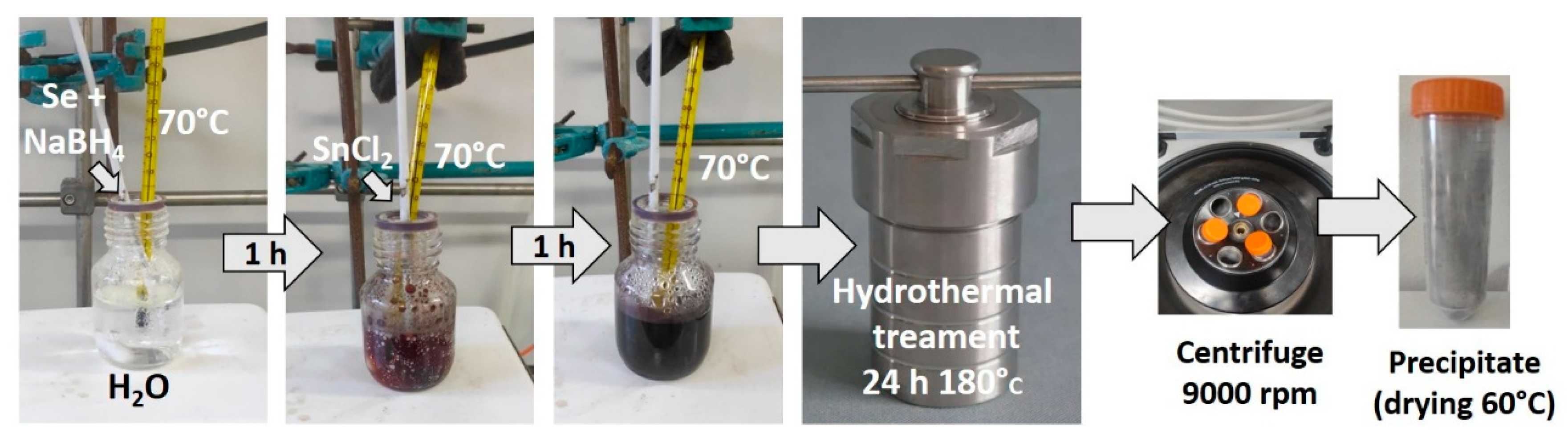 - Chen, H.; Shin, D. -W.; Nam, J.-G.; Kwon, K.-W.; Yoo, J.-B. Selenium nanowires and nanotubes synthesized via a facile template-free solution method. Mater. Res. Bull. 2010, 45, 699–704. [Google Scholar] [CrossRef]