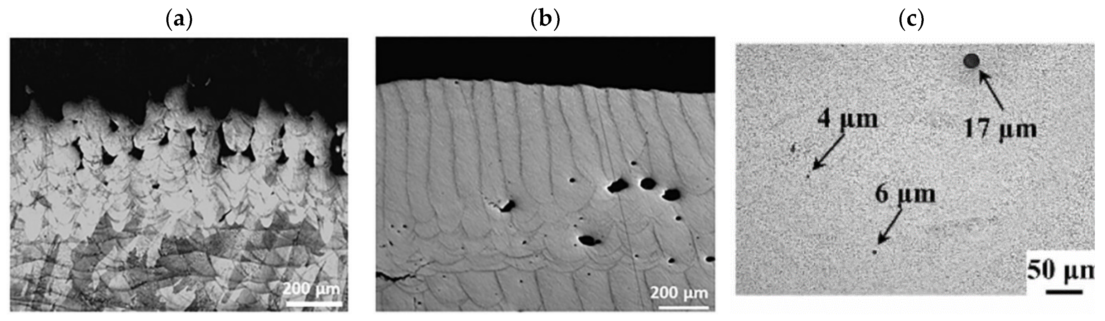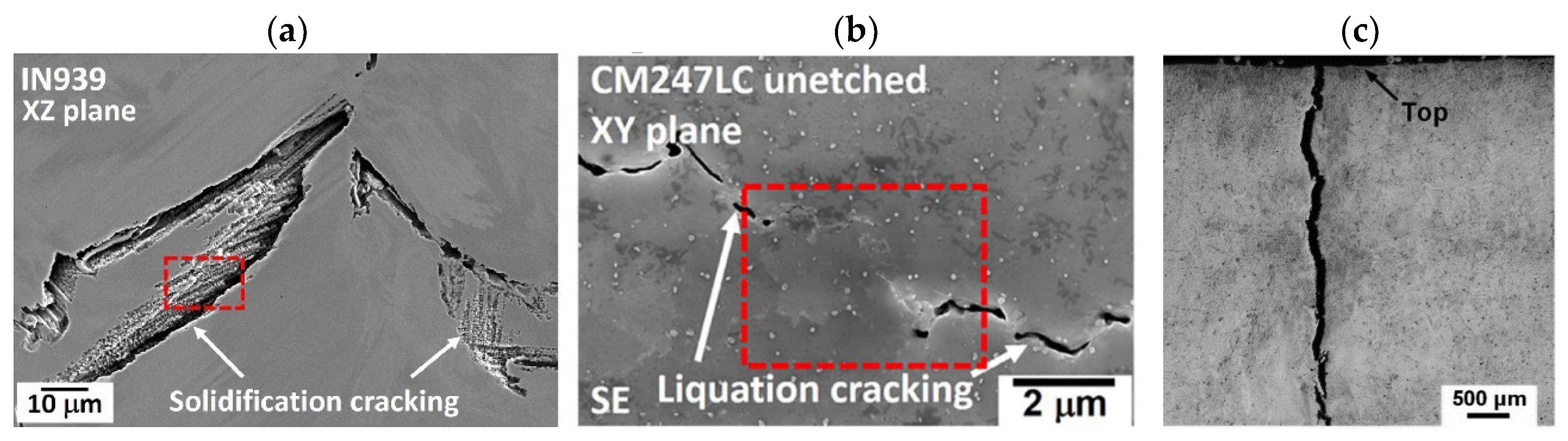 - Li, M.; Huang, K.; Yi, X. Crack Formation Mechanisms and Control Methods of Laser Cladding Coatings: A Review. Coatings 2023, 13, 1117. [Google Scholar] [CrossRef]
