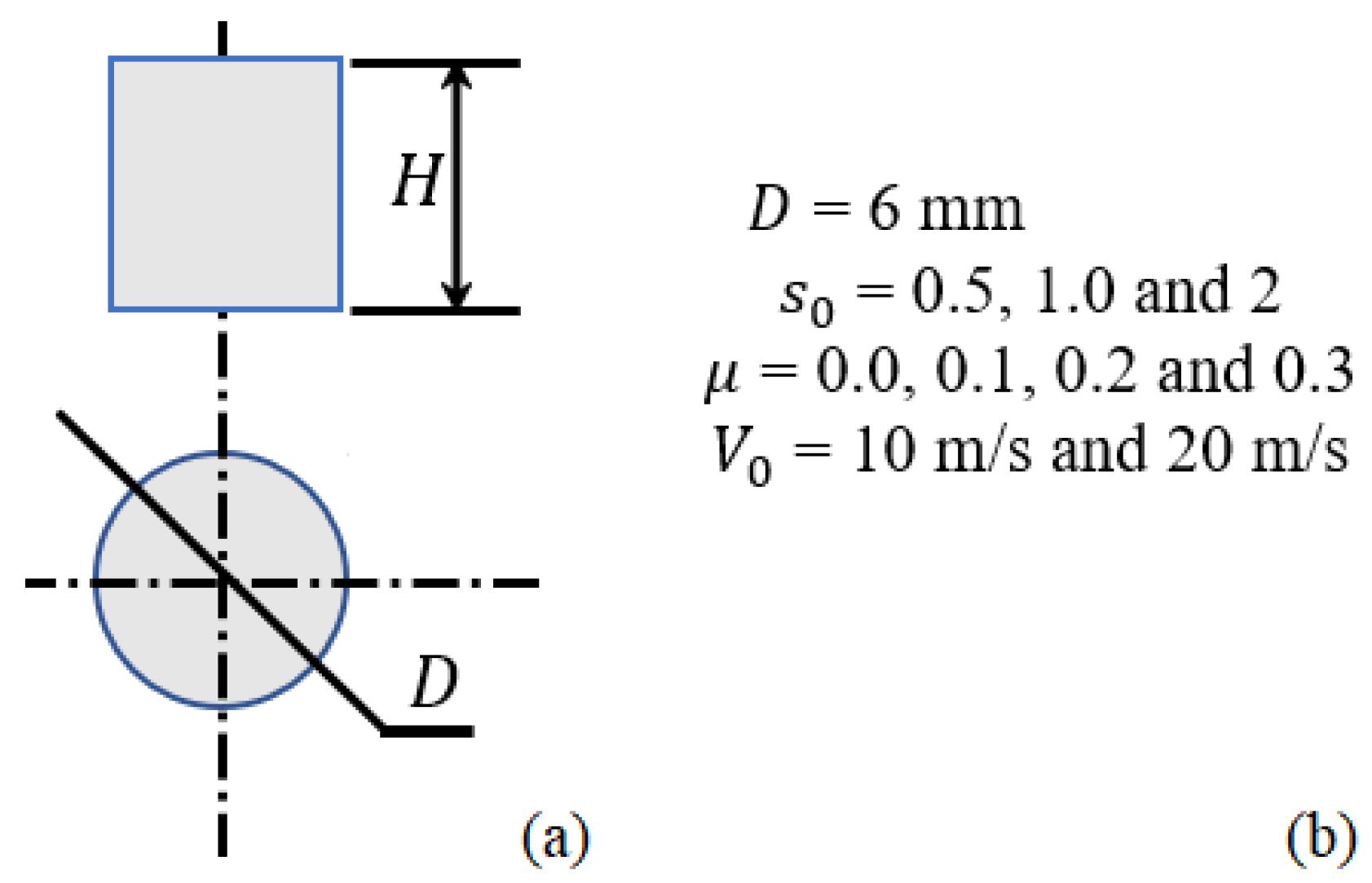 In addition to the previously described phenomena that affect the measurements, other factors can also change the signal, such as the puncture effect, local plasticity, the flatness of the projectile–bar contact, the position of the gauges, the specimen geometry, and friction. This paper studies how the sample dimensions H and D and the initial shape factor influence the material behavior due to friction.