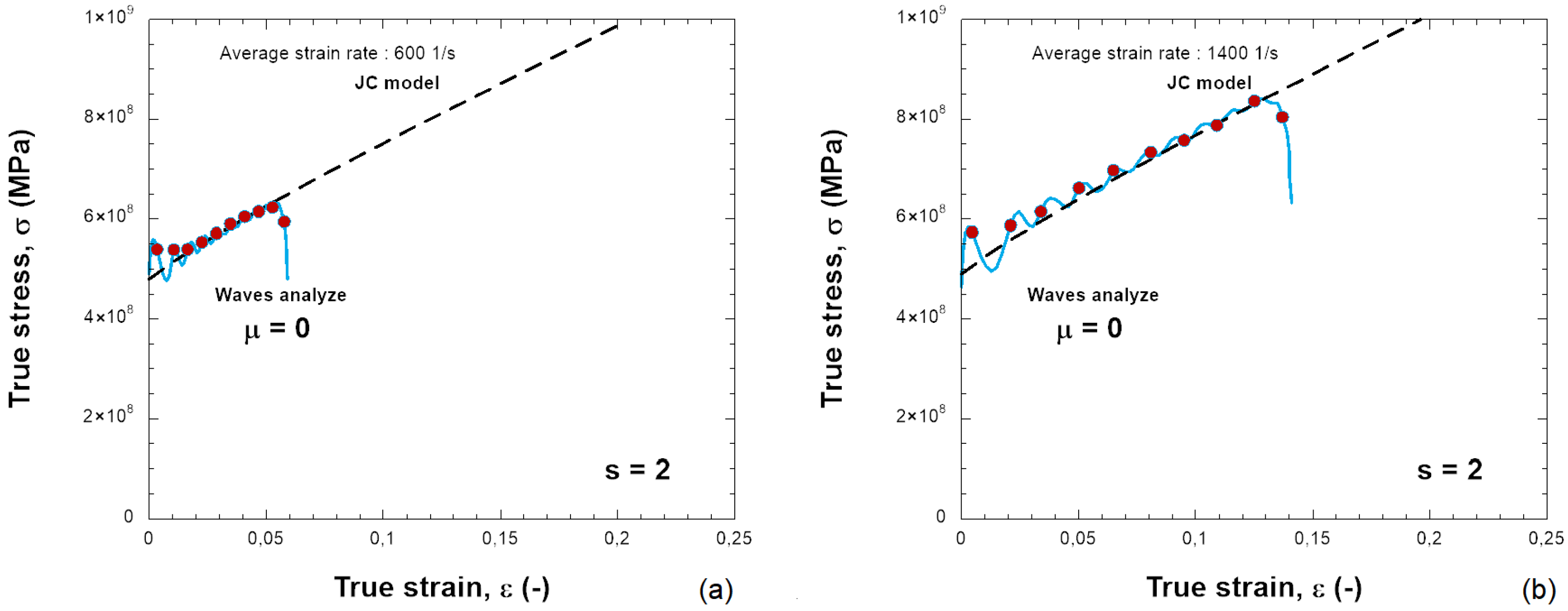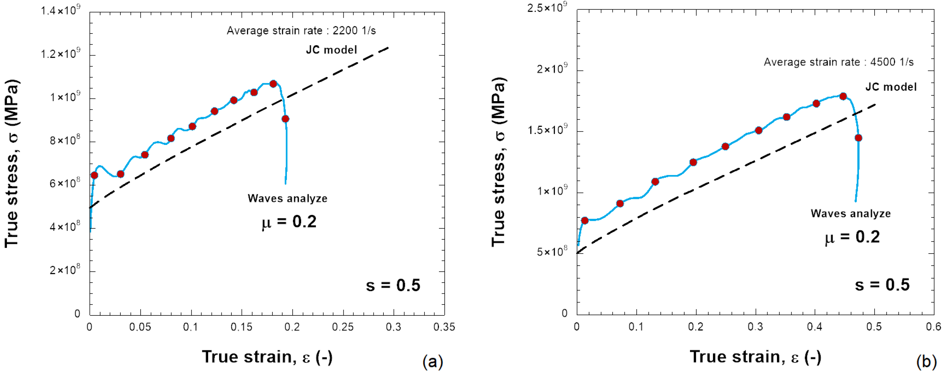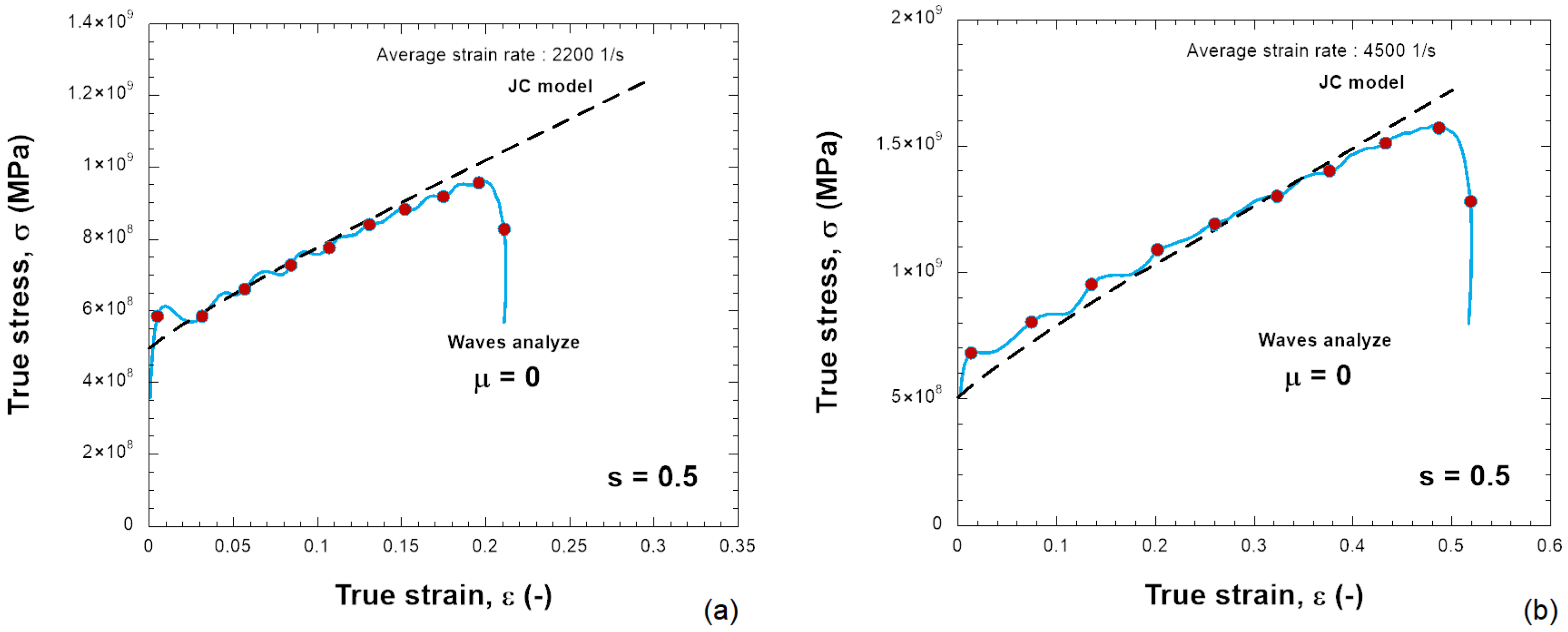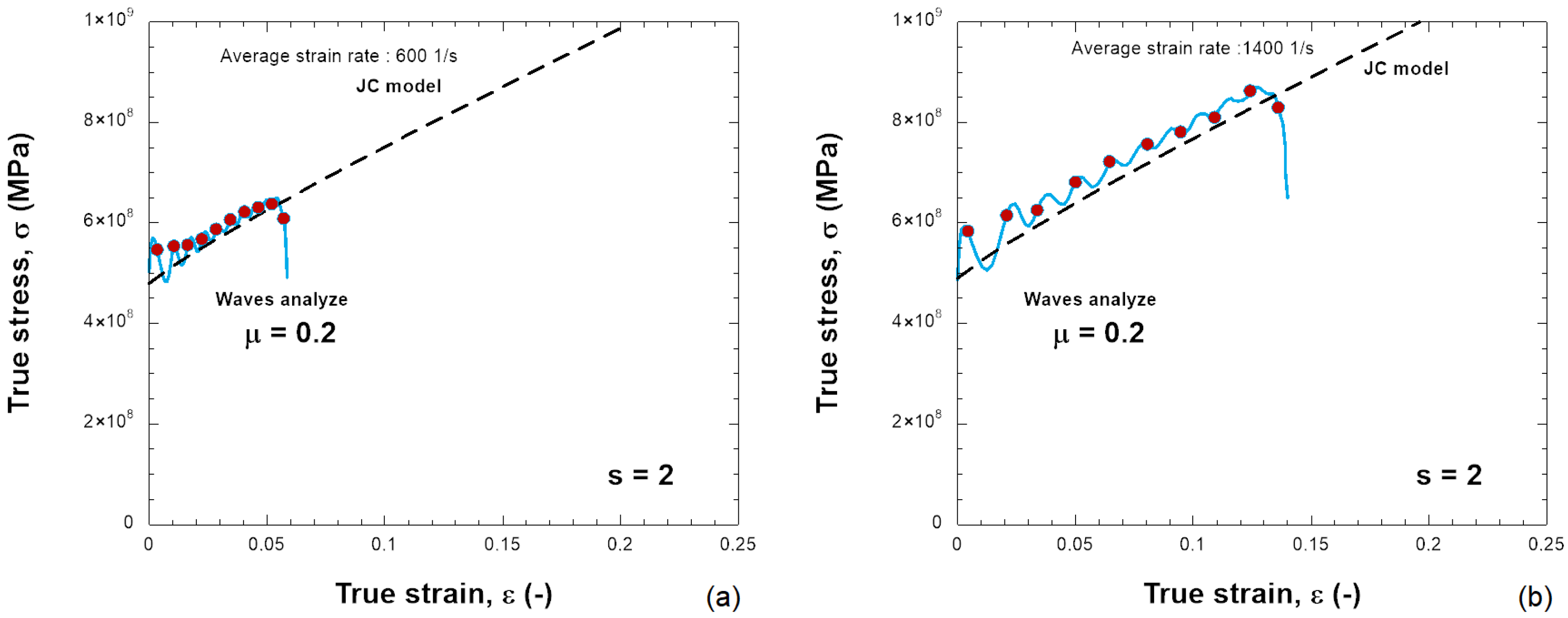 These results confirm that the proposed correction model provides a more accurate estimate of the friction effect, particularly at higher plastic strains and higher friction levels. Consequently, this leads to more reliable predictions of the true stress–strain response in SHPB compression tests.