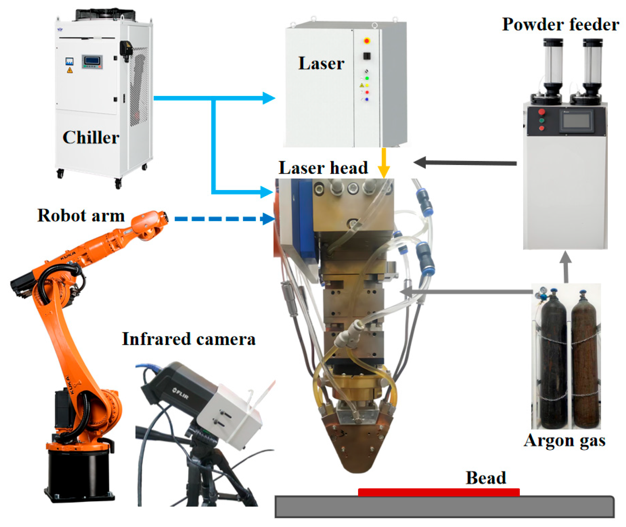 - Yao, M.; Kong, F. A review on laser cladding with wire feeding: Process fundamentals, theoretical analyses, online monitoring, and quality controls. Int. J. Adv. Manuf. Technol. 2025, 137, 4209–4242. [Google Scholar] [CrossRef]