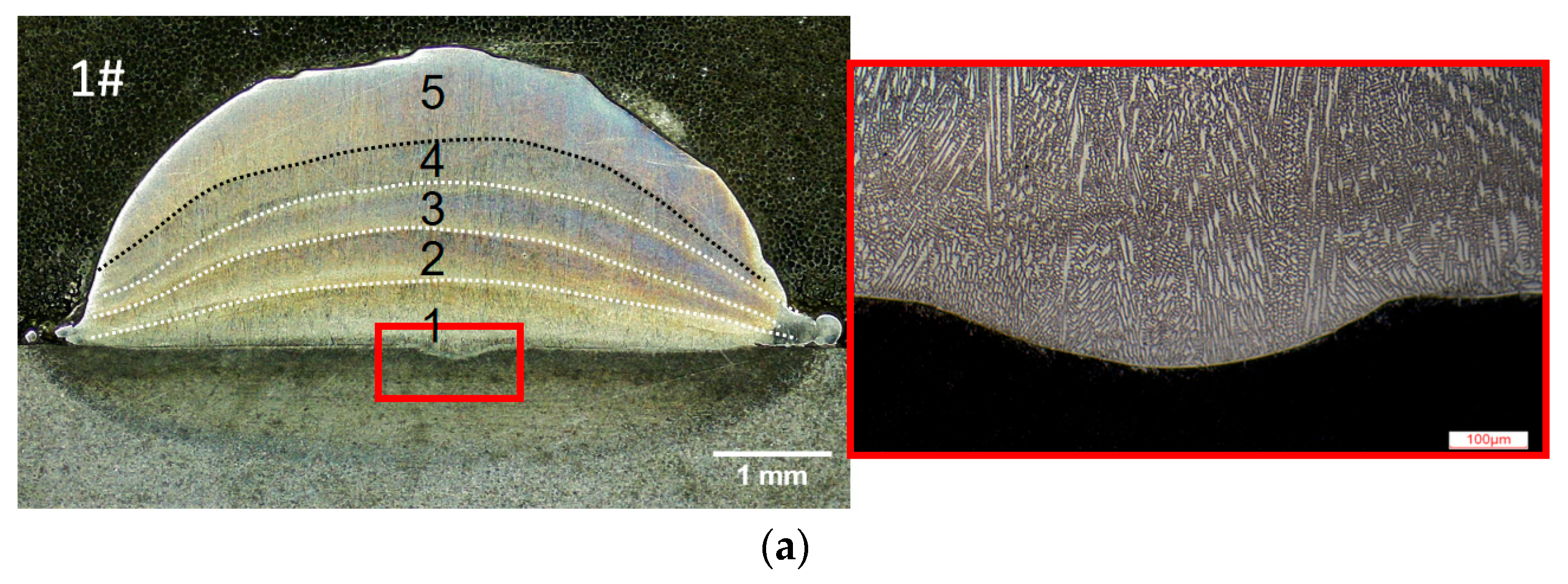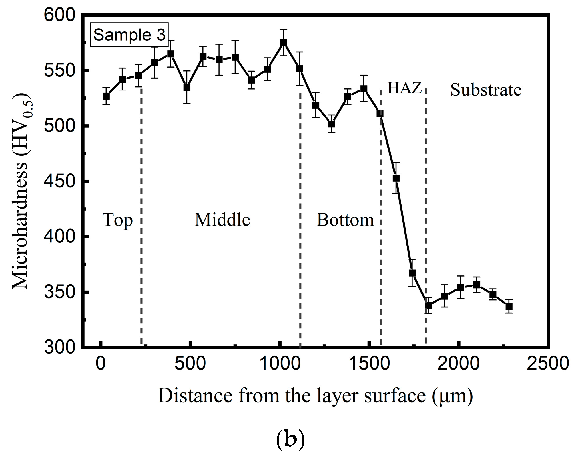 3.2. Cross-Sectional Analysis of the Cladding Layer