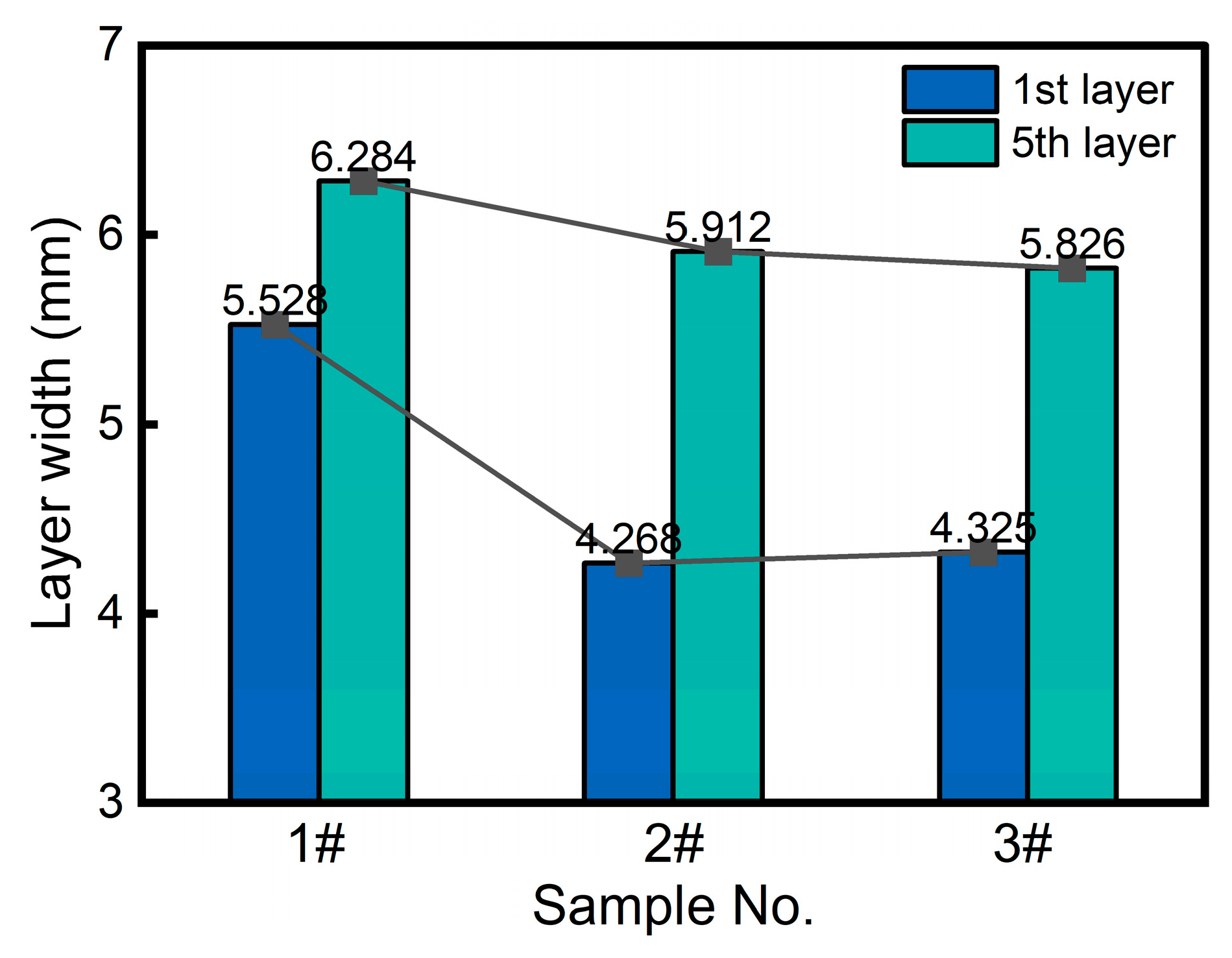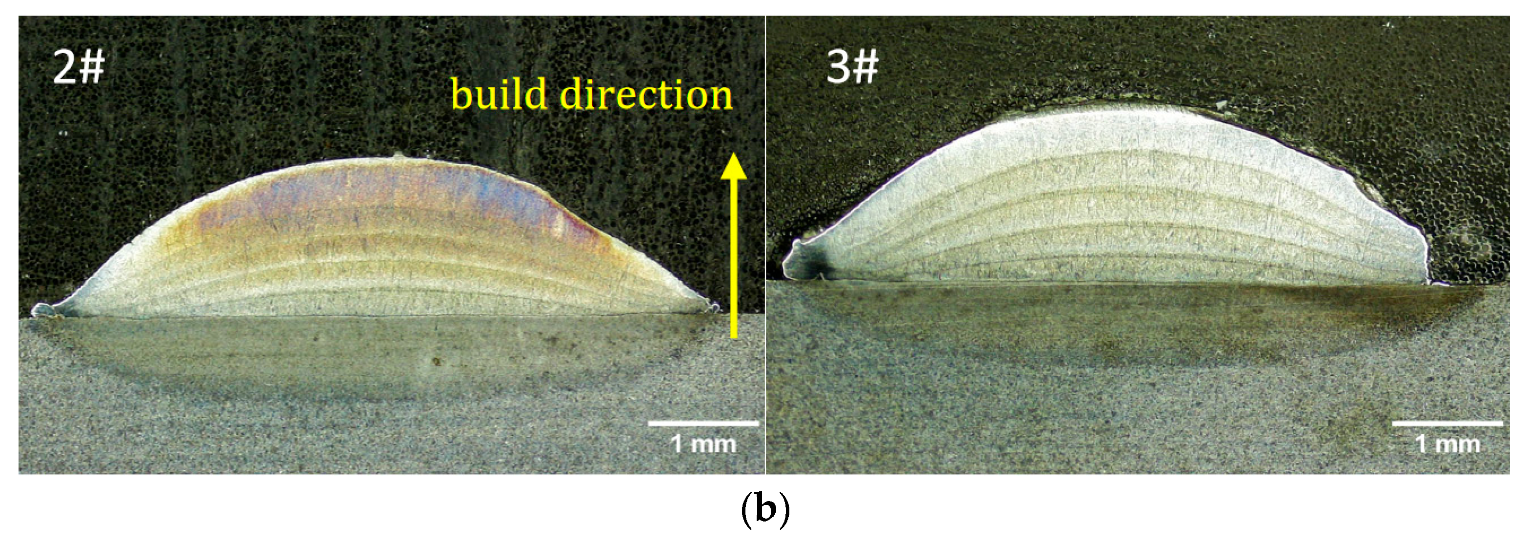 - Interlayer fusion lines appear distinctly due to coarsened grains formed by remelting of the pre-built layer. The geometric accuracy can be significantly improved by virtue of a predicted axis lifting amount (Zd), which ensures a constant standoff distance during each layer’s deposition.
