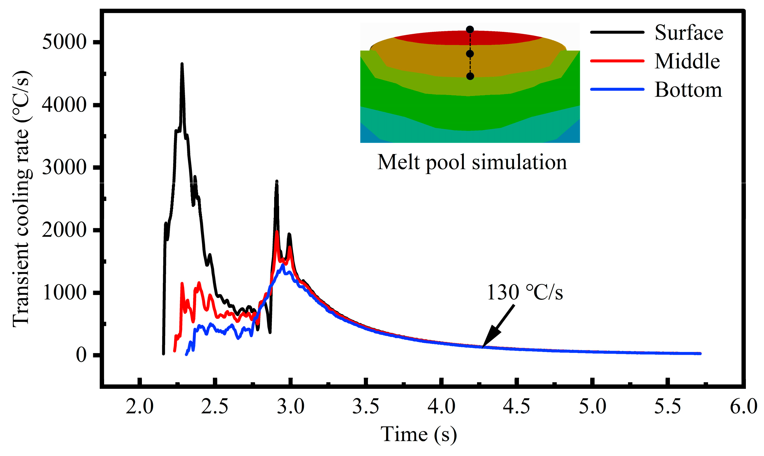 3.4. Cooling Rate Regulation and Microhardness Improvement
